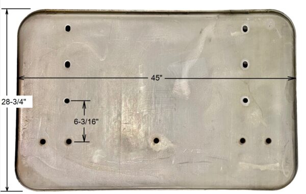 DA Pt #: DA-76006-H Description: Hopper Door, Large w/ Spreader Beam Holes, Stainless Steel Dimensions: 1/4″ Thick, 45″ x 28-3/4″ Overall Alt Pt #: 76006H